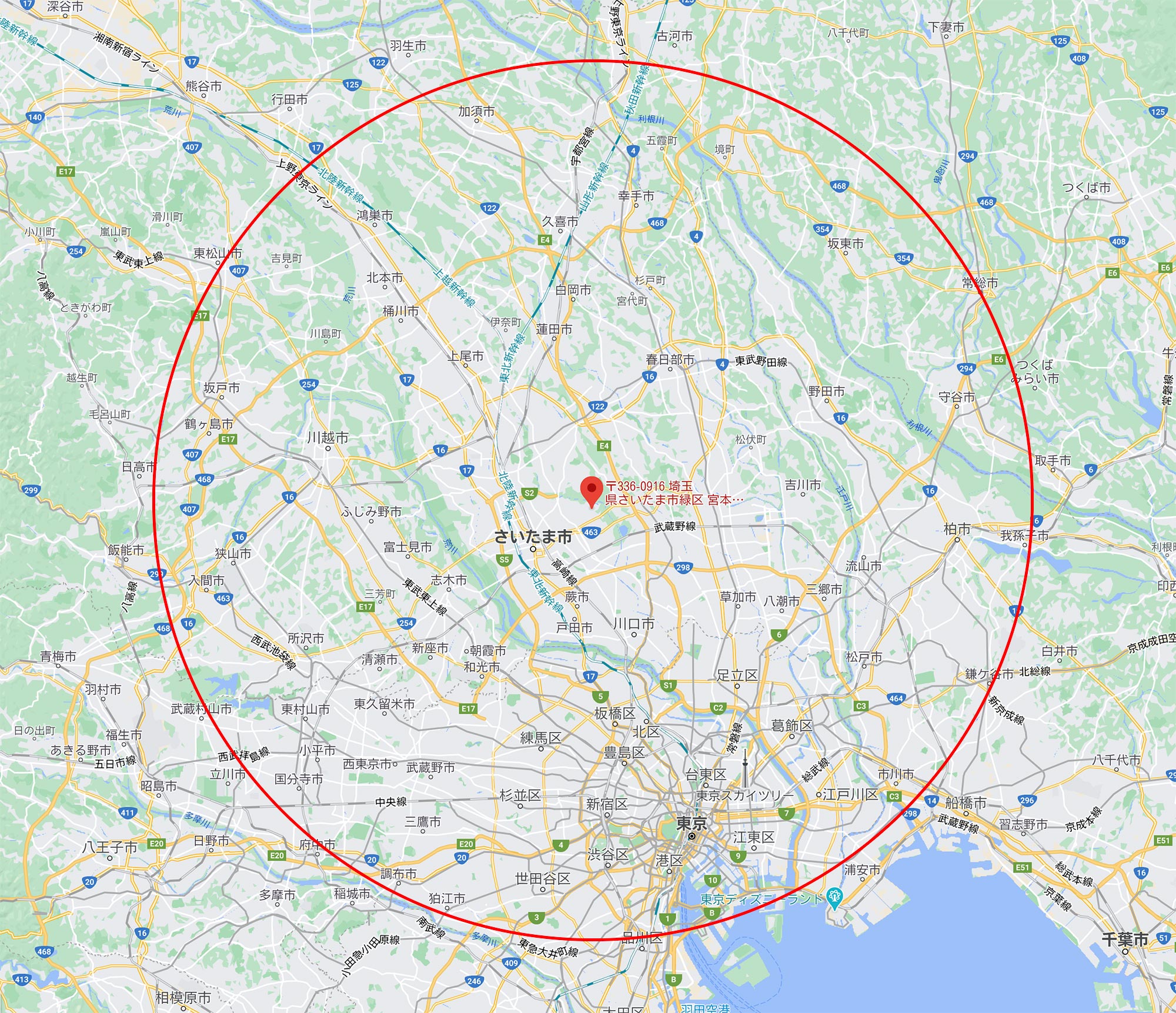 特にエリアを限定しておりませんが、車で片道1時間以内の範囲とさせていただいております。